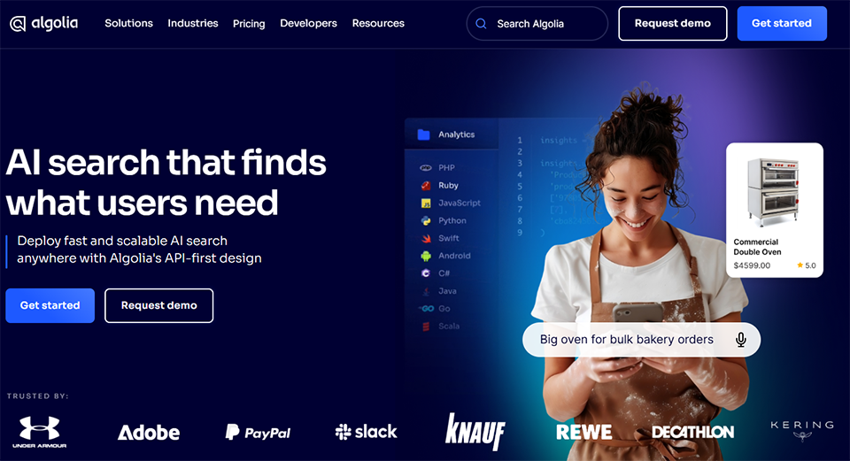 E-commerce : Optimisez l’expérience de recherche et de navigation sur toutes les plateformes e-commerce. Quelle que soit la plateforme e-commerce sur laquelle vous exercez votre activité, nous avons la solution. Algolia propose des expériences de recherche et de navigation unifiées, qui promettent de stimuler les conversions sur les principales plateformes.