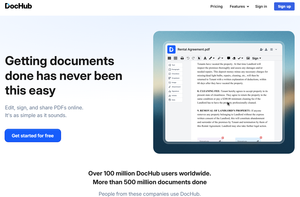 DocHub is a PDF editing and document management solution designed specifically for modern workflows that demand both efficiency and collaboration. Unlike traditional desktop-based PDF editors that often feel clunky and outdated, DocHub operates entirely in the cloud, allowing you to access, edit, and share your documents from any device with an internet connection. The platform has carved out a distinctive niche by focusing on seamless integration with popular cloud storage services and providing an intuitive interface that doesn't require extensive training to master.