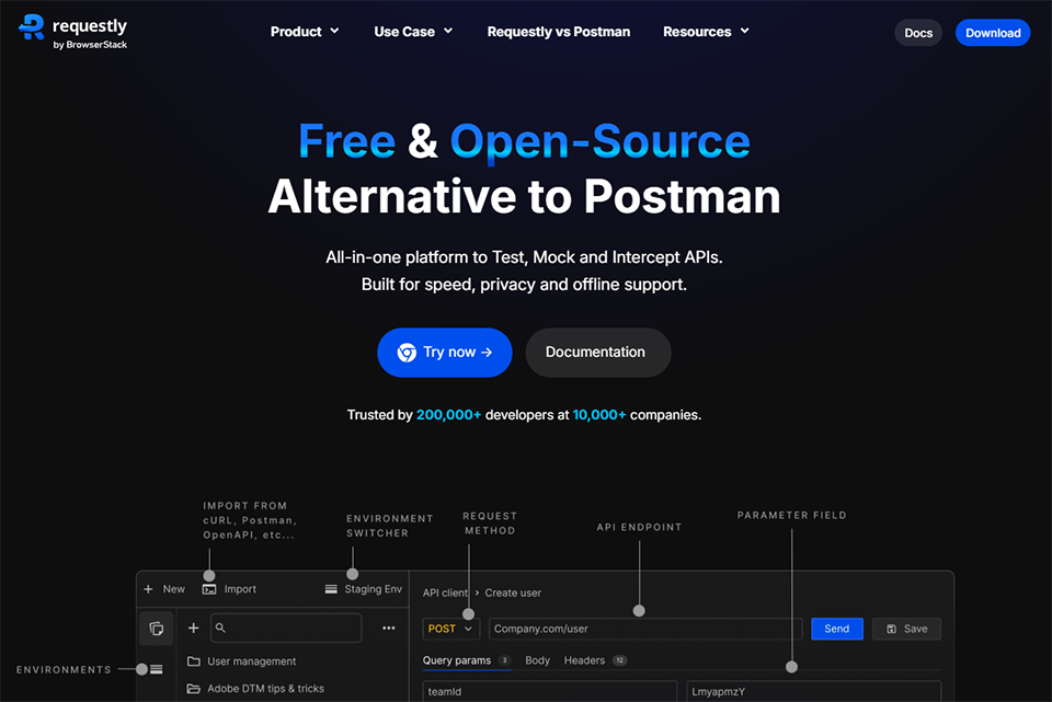 Requestly is a modern and powerful companion for API Development and Testing. It is an open-source tool purpose-built to speed up and simplify API development workflow for developers and QAs.