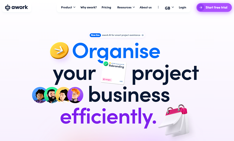 Awork is a project management and collaboration platform that enables teams to efficiently plan, track and manage their tasks. With an intuitive interface, Awork offers features such as customizable dashboards, deadline management and time tracking.