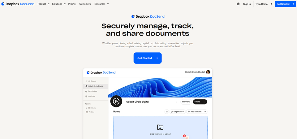 DocSend, a product on Dropbox, is a platform dedicated to secure document sharing and management. Designed for professionals and enterprises, it enables centralized control of files shared online, offering advanced features such as real-time interaction tracking and customized permissions options.