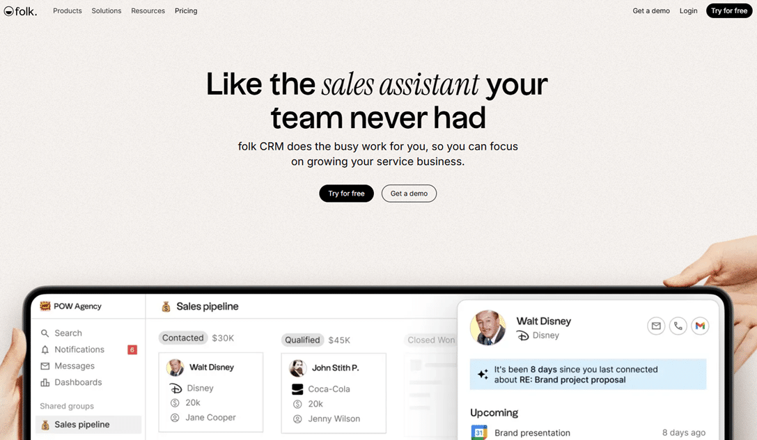 Folk is a relationship management platform that centralizes contact and company information, streamlining collaboration within teams. It allows users to create detailed profiles for each contact, organize interactions, and track communications. Folk integrates seamlessly with other tools like calendars and CRMs, enabling smooth data synchronization.