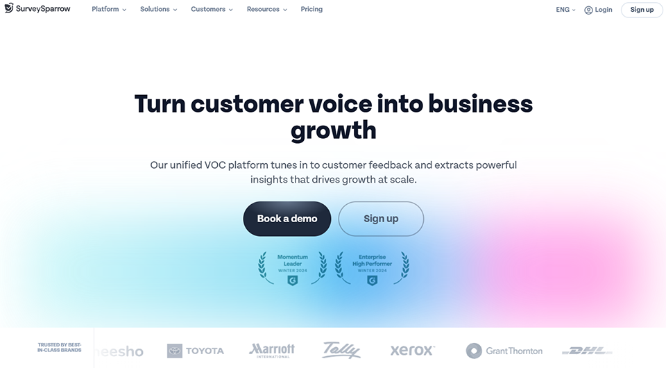 This combination of features makes SurveySparrow an ideal solution for companies looking to modernize their approach to surveys while retaining the analytical depth needed for informed decision-making.